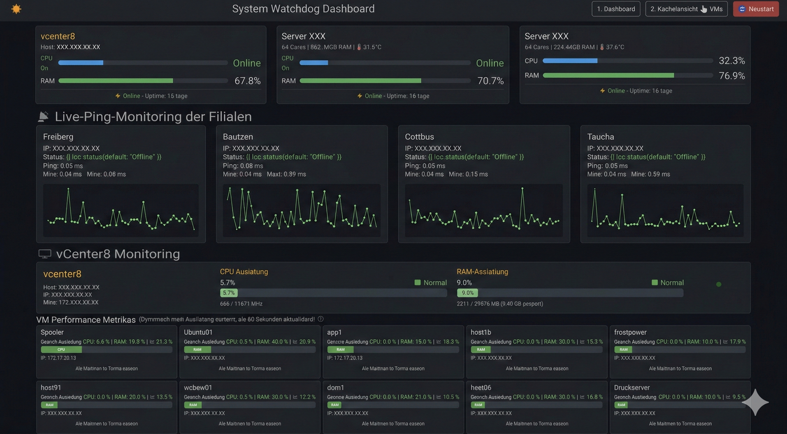 Lösung: Ein maßgeschneidertes Echtzeit-Monitoring-Dashboard – vollständig lokal, keine Cloud, keine Lizenzkosten.